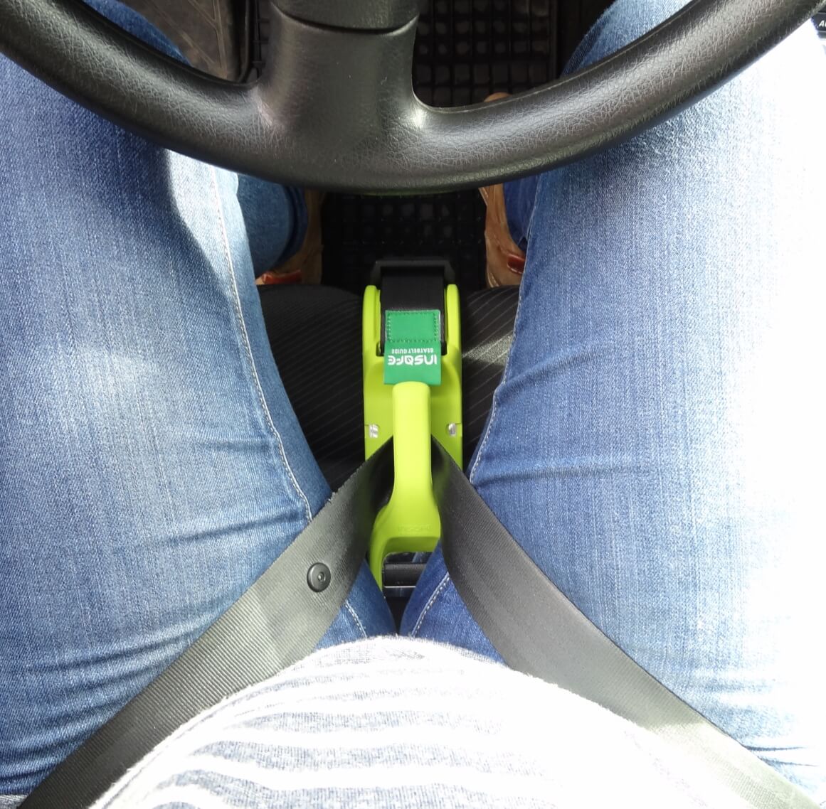 INSAFE Seat-Belt Guide redirects the lap belt away from the belly of a pregnant woman. It eliminates the danger of putting too much pressure on the belly in the case of sudden braking or traffic accident. Using the INSAFE adapter reduces the risk of the unborn child’s injury in the case of a car accident.