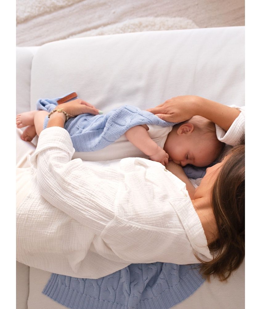The blanket is suitable from the first days of life. Its square form (85×85 cm) makes the blanket also suitable as a wrap. Cozy blanket is lightweight, great for naps at home, on a walk, in the car.