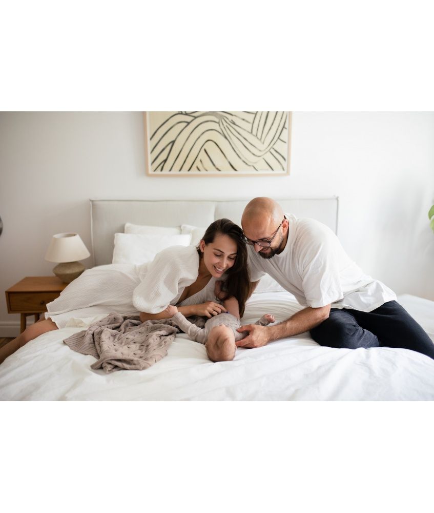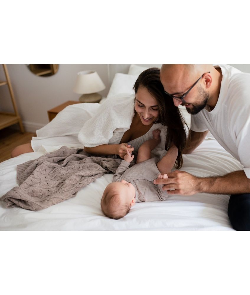 The blanket is suitable from the first days of life. Its square form (85×85 cm) makes the blanket also suitable as a wrap. Cozy blanket is lightweight, great for naps at home, on a walk, in the car.